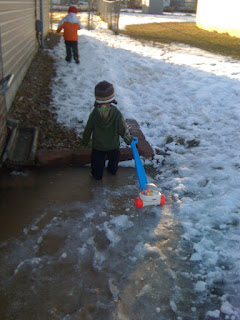 After school yesterday I let the boys play outside in what was left of our snow. Needless to say, the three of us had a blast. I took as many good pictures as I could with my phone!
